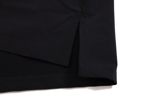 ネック部分はコットンリブを使用し、裾はサイドにスリットが入った仕様。ゆったりとした着用感が