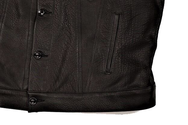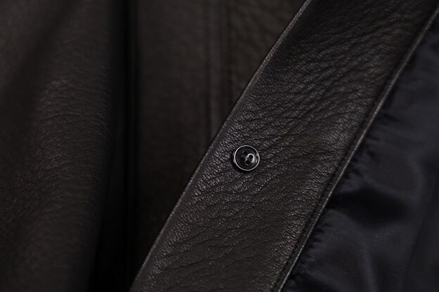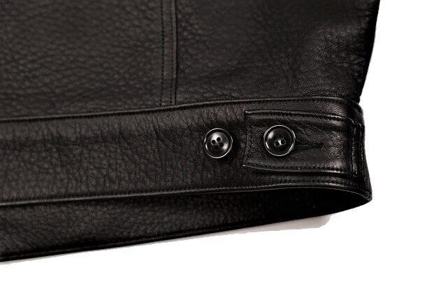 サイズは46サイズ、48サイズの2サイズ展開。ワイド&ショートなシルエットが本製品の大きな特徴であり、ドロップショルダーによるディアスキンレザーの落ち感、ゆったりとした独特の着用感がお楽しみ頂けます。