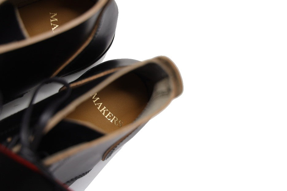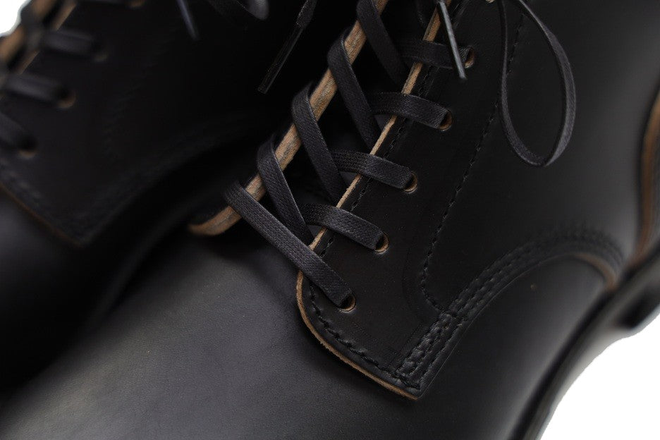 インソールにはブランドネームが入り、トゥ内側には吸湿性に優れたコットンヘリンボン地を使用グッドイヤーウェルト製法で仕上げられた製品に、ボリューム感のあるドクターソールを使用する事で無骨な雰囲気を備えたドレスワークな一足に仕上げられています。