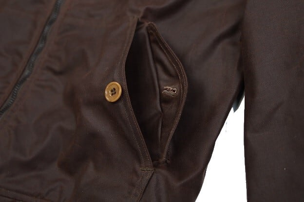 手掛けられたフィールドジャケット。素材にはBritishi Millerain社のワックスコットン生地を使用しており