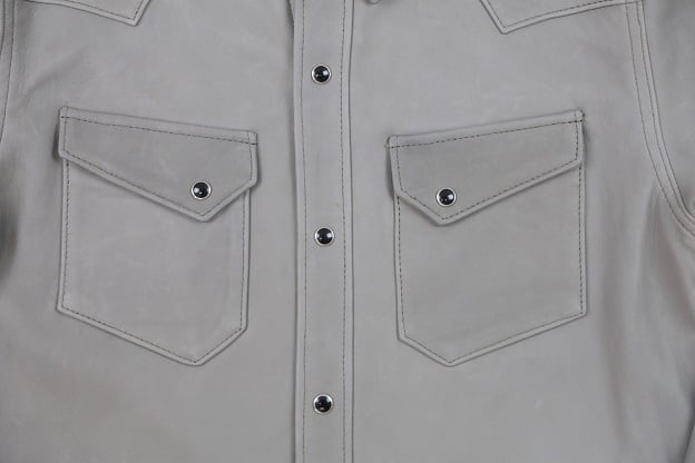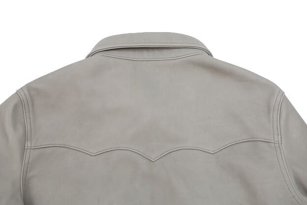素材にシープスキンレザーを使用した、ウエスタンシャツ。