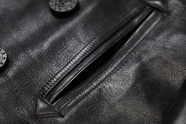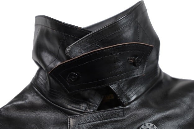 スタイルは1910 US NAVY P-COATを基にしたデザインとなり、ハンドウォーマーを含む4ポケットや襟のチンストラップ、10ボタンが大きな特徴となっています。