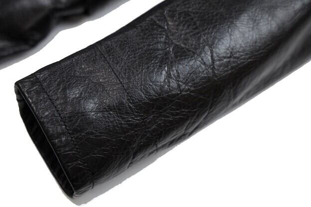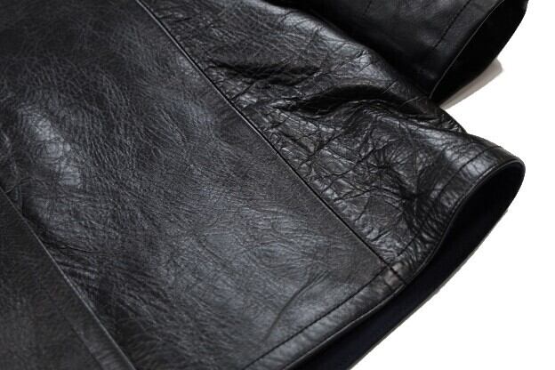 手に持つとずっしり重量感ありながら、着るとそれほど重さを感じる事なく柔らかく馴染みシルエットもすっきりとした、渾身のレザーコートに仕上げられています。