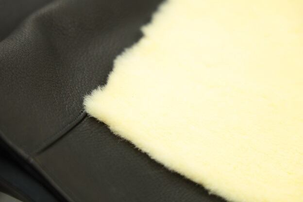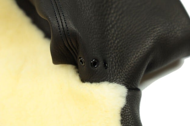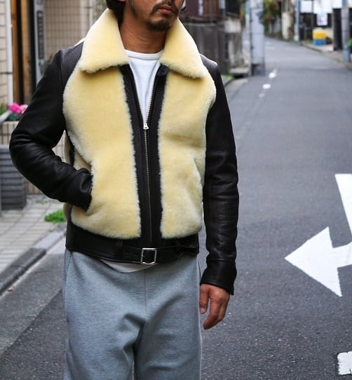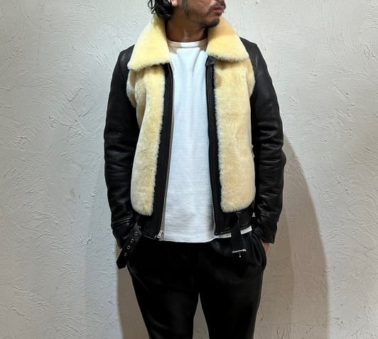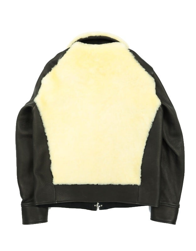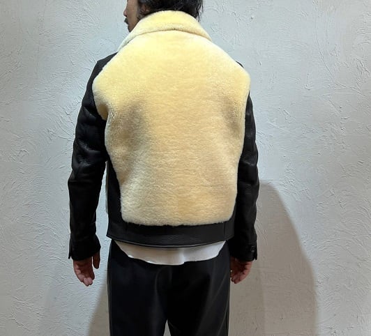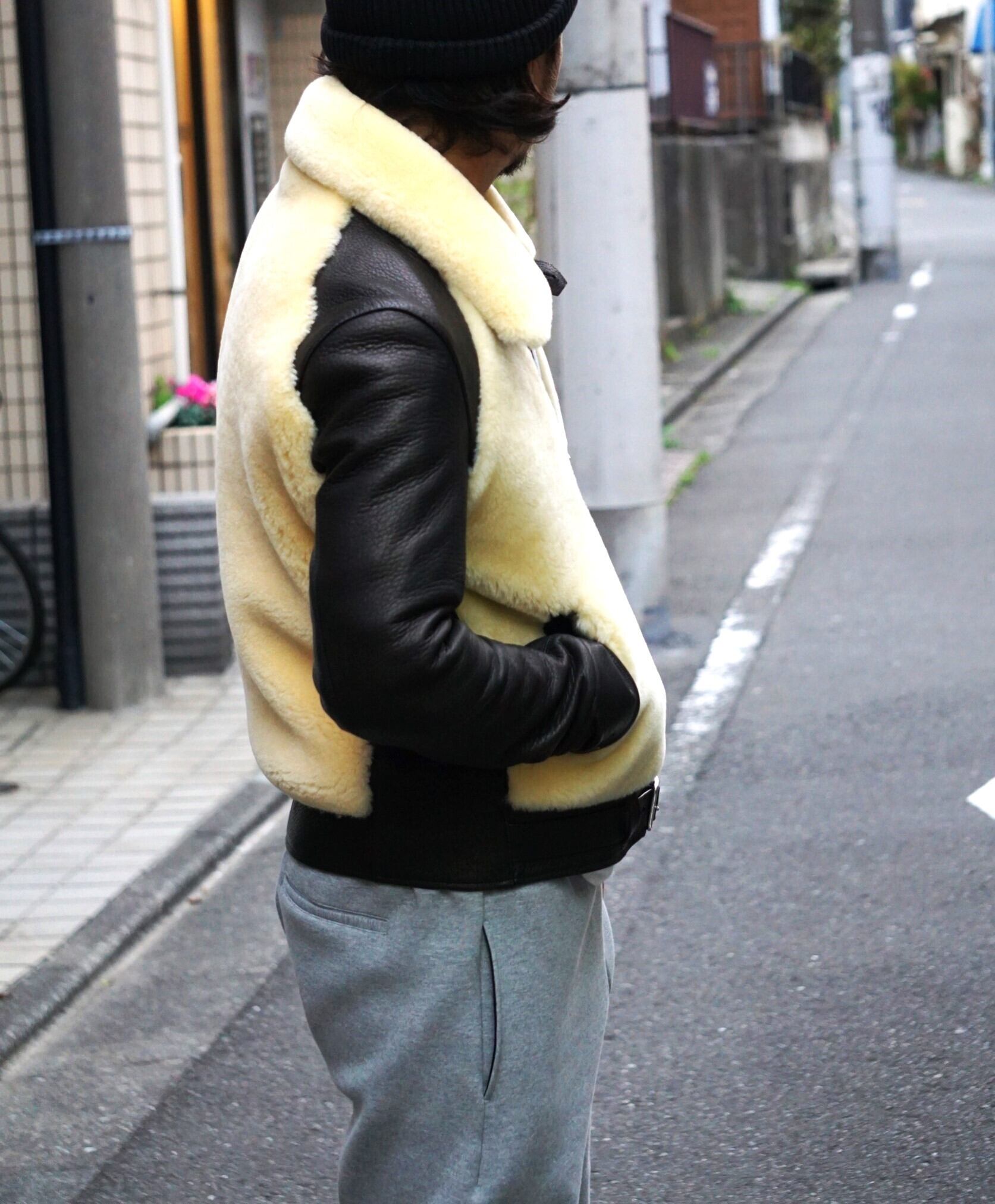 ムートン部分には贅沢なリアルムートンを使用。また毛先がカールしたタイプではなく、毛流しというより高級感・肌触りの良い仕上がりに。切り替えは肩からラグランに沿って