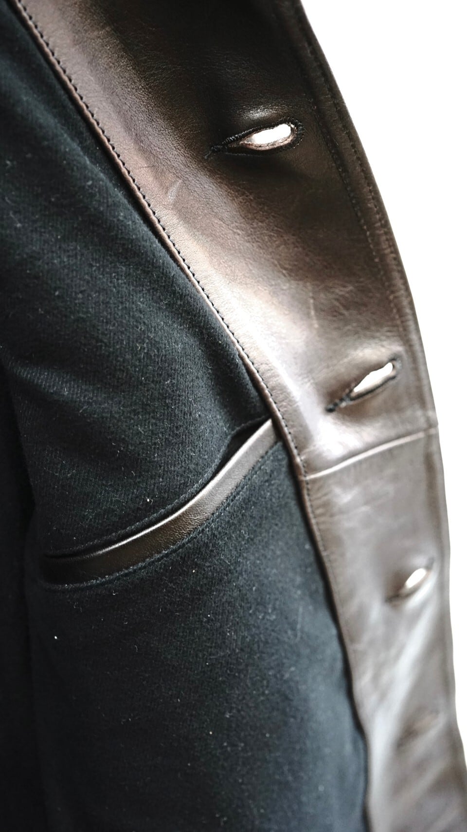各部ステッチワークを意識して製作されており、着込む事によるパッカリングなどの