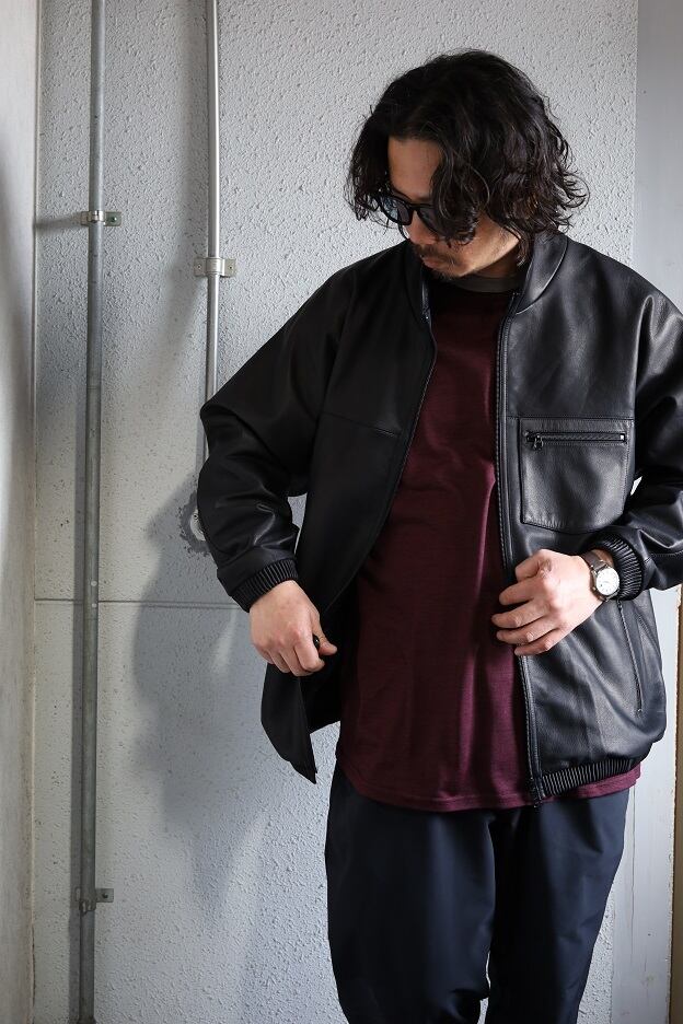 デザインは90sアウトドアウェアに意匠を感じさせる、スタンドカラーのレトロクラシックをモチーフとしており、フロントはジップアップタイプ、袖と裾には伸縮するレザーリブを取り入れる事で、モチーフデザインの雰囲気を崩さず、且つ他にはない全く新しいレザージャケットとしての魅力を持ち合わせた製品となっています。
