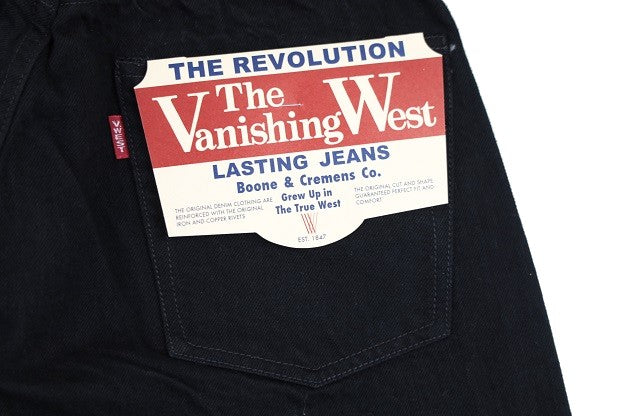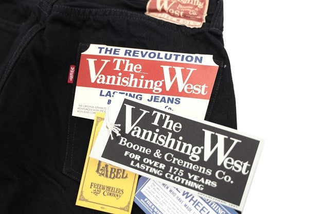当時のカリフォルニア州、オークランドに拠を構えていた"MOTOR PSYCLONE GARAGE"なるサイクルショップがイメージソースとなっており、そのショップが【THE VANISHING WEST】にて今回のブラックジーンズを別注したというストーリーを基にリリースしています。
