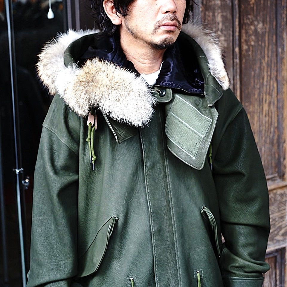 モチーフとなったM-65の別体フードをレザーで製作するにあたり